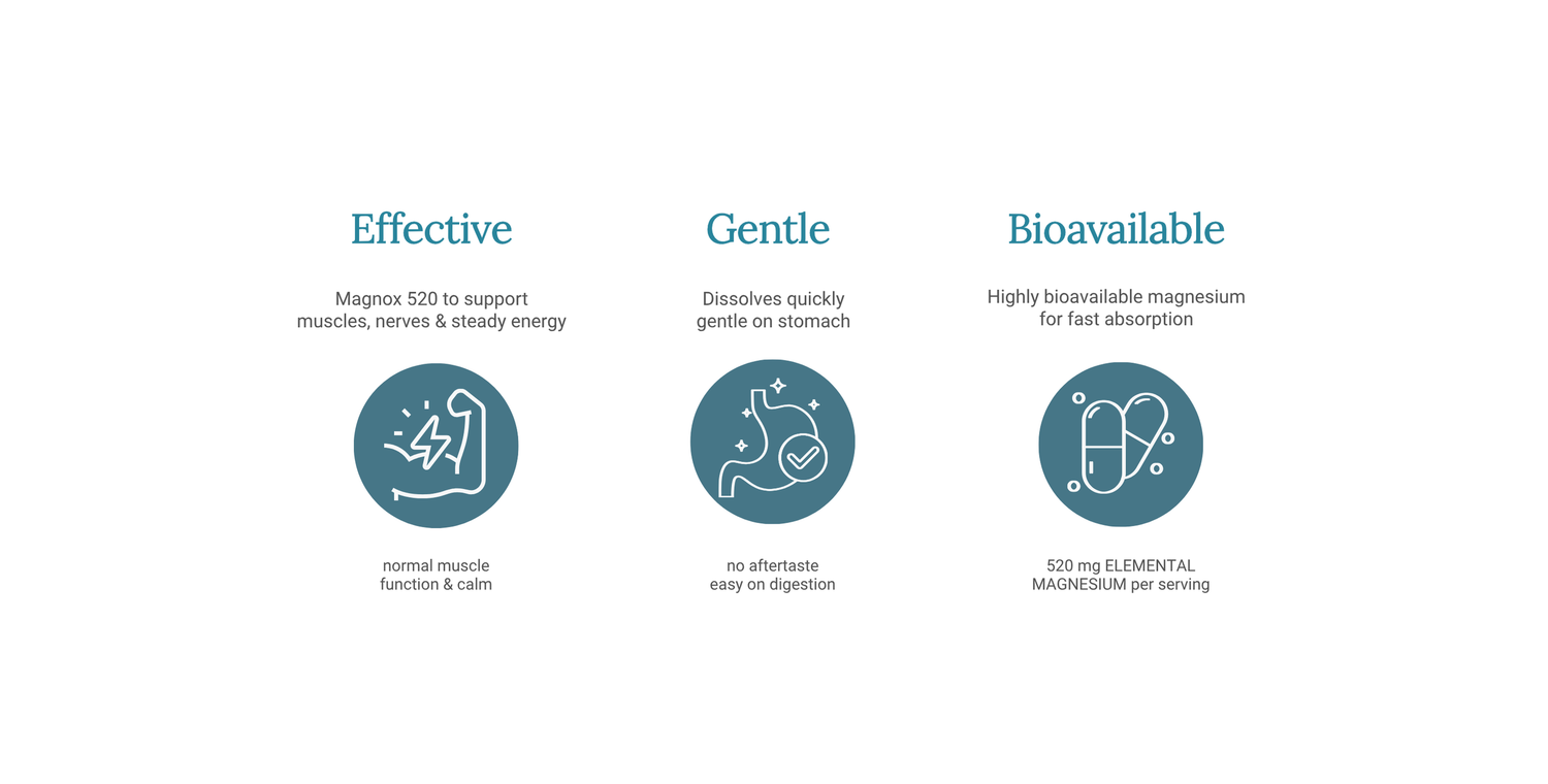 Magnox 520 is a high-potency magnesium supplement containing 520 mg of pure magnesium per capsule. It's vegan-friendly and easy to use, and it's designed to reduce muscle cramps, improve sleep, and support overall vitality.