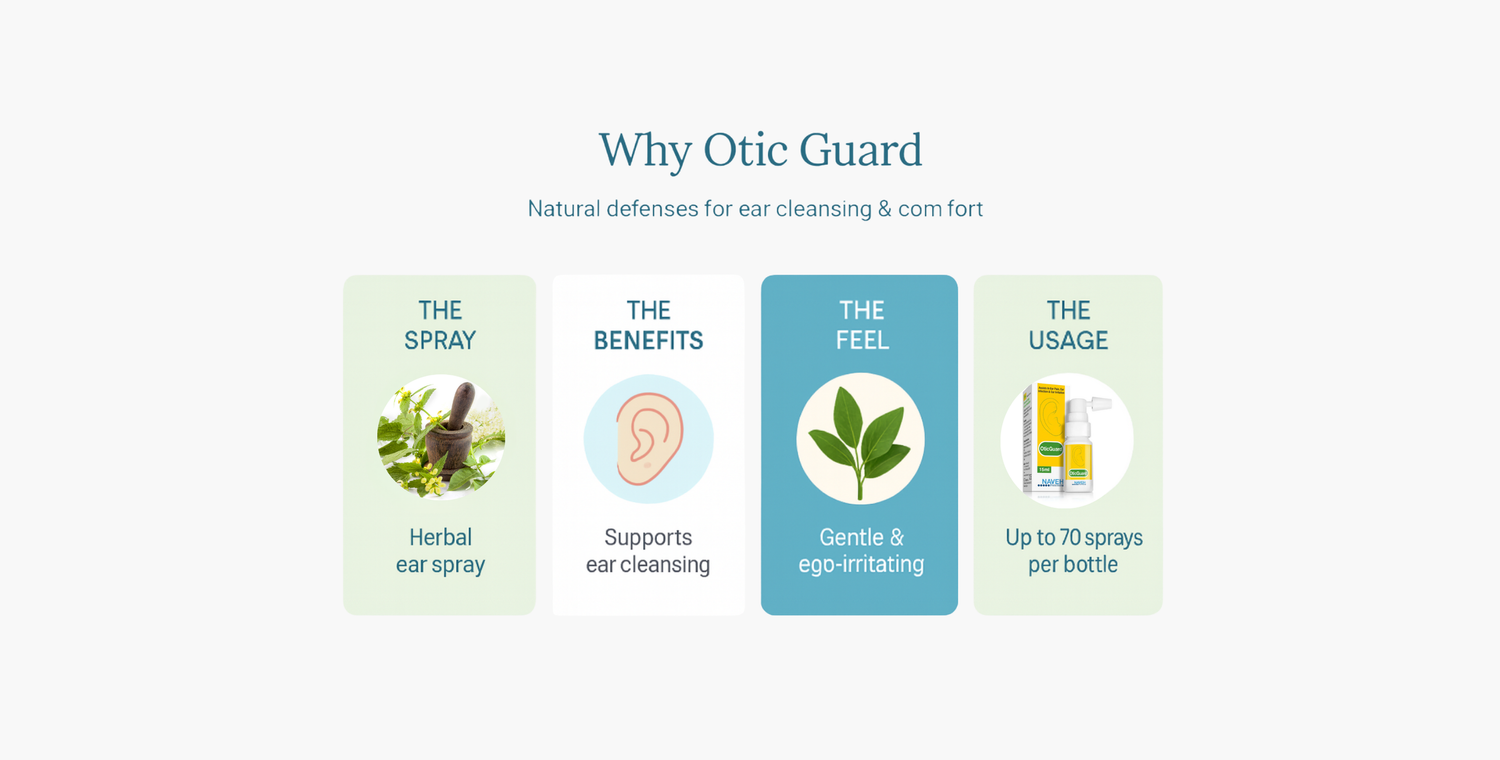 Otic Guard is an herbal ear oil that soothes irritation, softens earwax, and supports ear health. Choosing a spray over the traditional ear drops helps deliver the treatment to the inner ear canal and covers all the infected areas.
