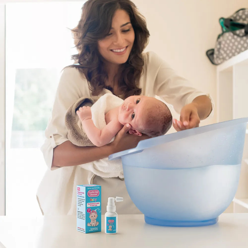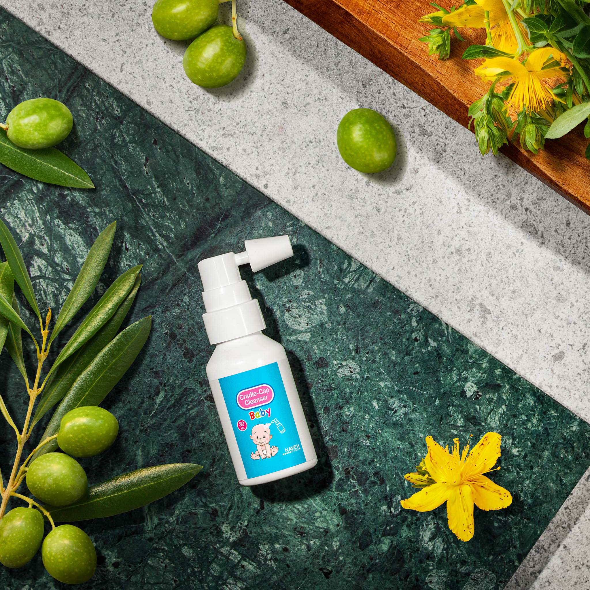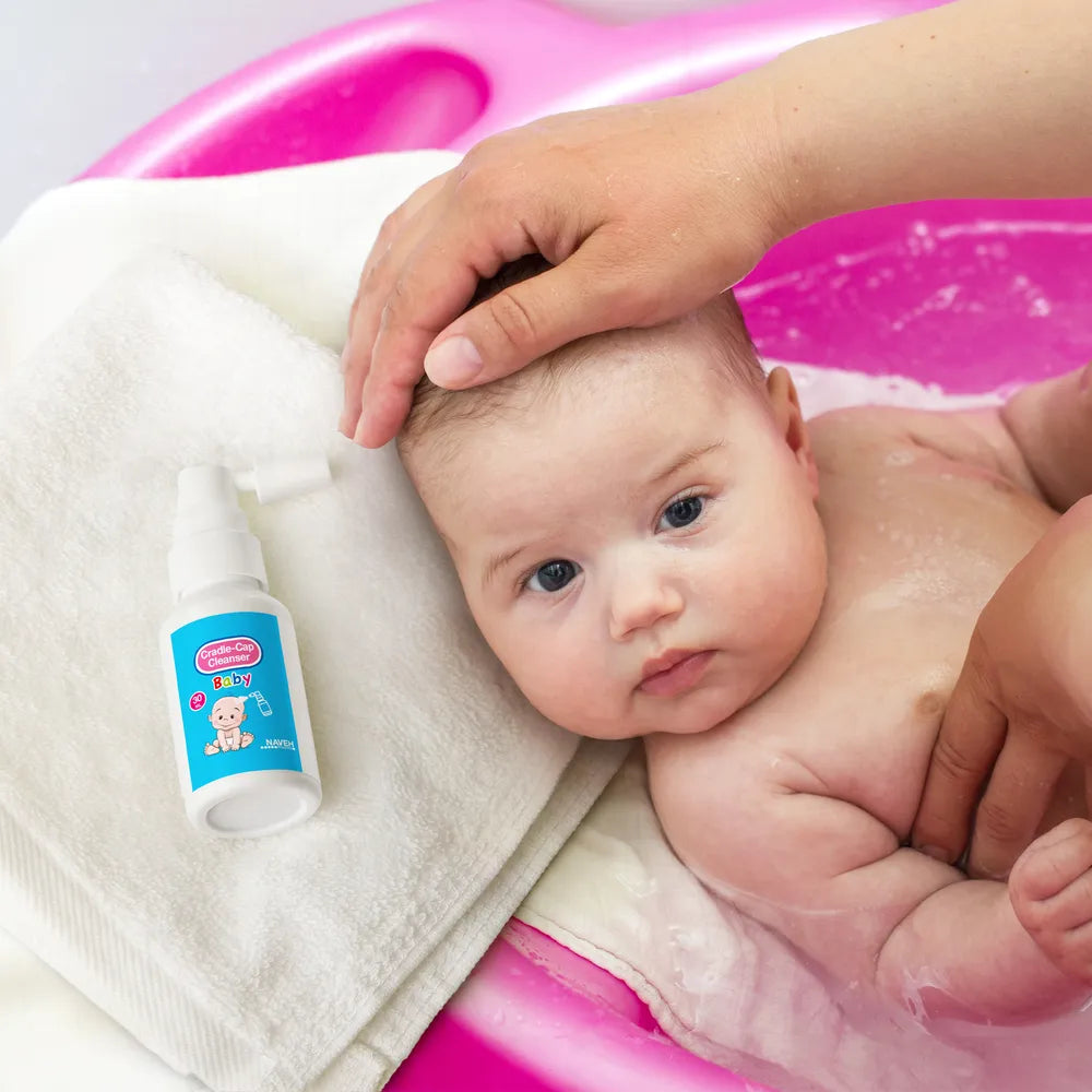 Cradle Cap Cleanser is a 100% natural pre-bath spray designed to gently treat cradle cap. Infused with olive oil and squalene, it offers a stress-free, scrub-free solution for delicate baby skin.